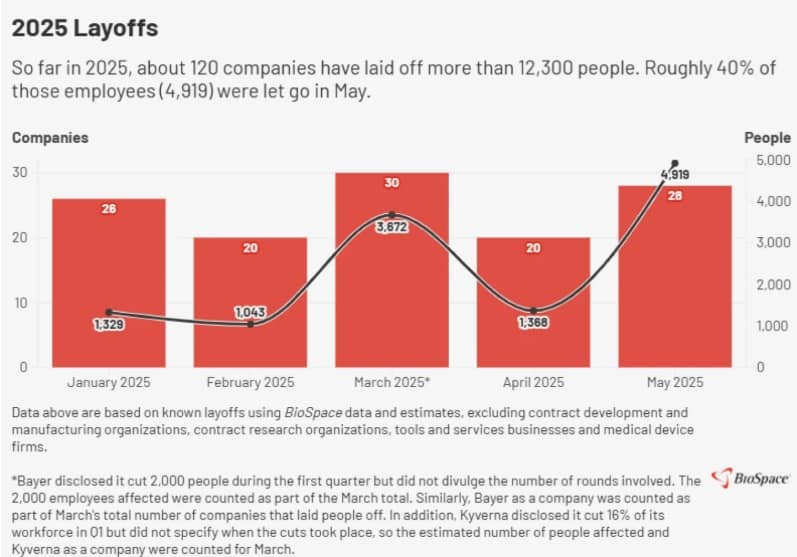 May saw the highest number of layoffs in biotech this year. Source: Biospace
