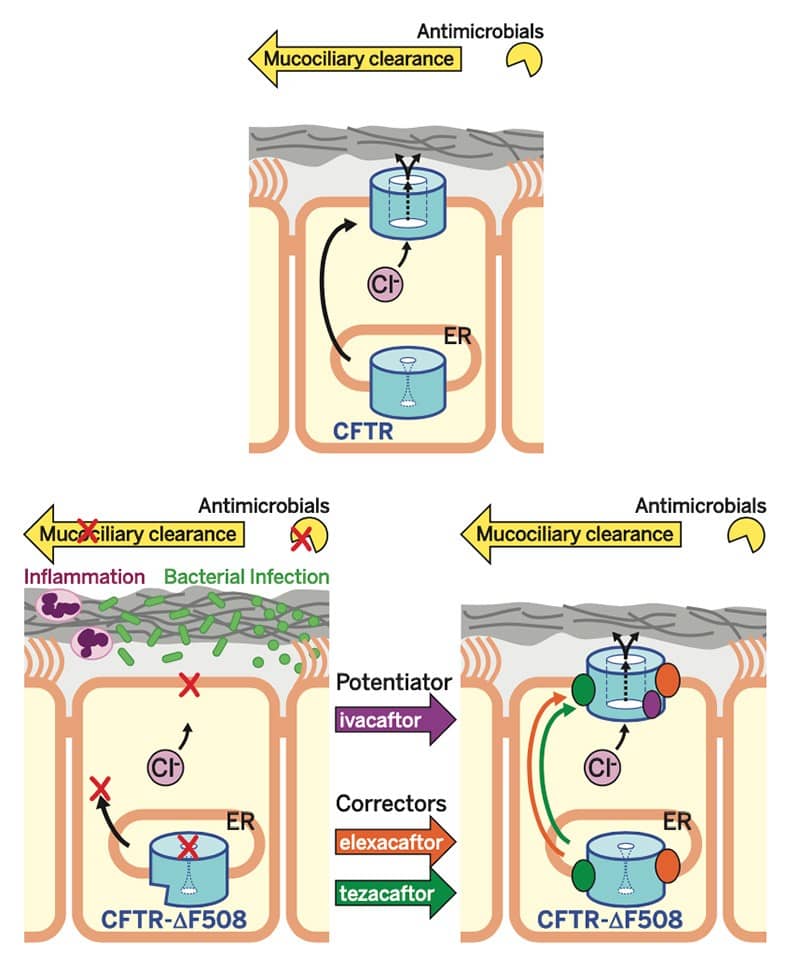 Haystack chat On September 11, the Lasker Foundation awarded the 2025 Lasker~DeBakey Clinical Medical Research Award to Michael Welsh, Jesús González and Paul Negulescu for discoveries that led to the development of Trikafta, a triple combination of cystic fibrosis transmembrane conductance regulator (CFTR) potentiators and correctors to treat cystic fibrosis. This award recognizes the contribution of Trikafta to improving the quality of life of ~90% of the 40,000 people living with this condition in the United States, reducing infection-related hospitalizations and lung transplants, among other benefits. But what about the other 10% of patients who don’t respond to Trikafta, many of whom carry so-called Class I alleles that cannot be rescued by this drug combination? Although a lot of progress has been made, several obstacles lie in the path of effective medicines for people who produce no, or negligible amounts of, CFTR protein. It should come as no surprise that the main therapeutic strategies for Class I alleles aim to put missing CFTR back into lung cells. Among these strategies, mRNA delivery is the most advanced. VX-522, an RNA therapeutic program from Vertex and Moderna currently in Phase 2, is an inhaled drug that aims to deliver full-length CFTR mRNA to the lung using lipid nanoparticles (LNPs). Two related, competing mRNA delivery programs are at a similar stage of clinical development: ARCT-032 by Arcturus Therapeutics using their LUNAR LNPs; and RCT-2100 by ReCode Therapeutics, which uses a lung-targeted SORT (selective organ-targeting) LNP. A key feature of RNA-based therapies is that any therapeutic benefit would likely be transient, requiring periodic administration of the medicine to achieve sustained effects. Gene therapy and gene editing have the potential to be a curative, “one and done” procedure. Thus far, however, only gene therapy programs have advanced far enough to be in human testing. Of these, 4D Molecular Therapeutics’ 4D-710 and Spirovants’ SP-101 use different AAV subtypes designed to optimize delivery to airway basal epithelial cells of a CFTR minigene that lacks the regulatory domain. Both projects are in Phase 1/2 of clinical development. As the large size (6.2 kb) of the CFTR transgene exceeds the packaging capacity of AAV vectors, Krystal Biotech and Boehringer Ingelheim have launched Phase 1/2 clinical programs using viral vectors with a greater payload capacity: KB407 is a re-dosable herpes simplex virus (HSV)-1 vector with a cargo capacity >30 kb that delivers two copies of the CFTR gene to lung epithelial cells using a nebulizer. BI 3720931 is Boehringer’s inhaled lentiviral vector pseudotyped with Sendai virus F and HN envelope proteins (rSIV.F/HN) engineered to deliver a single copy of the CFTR gene. Further behind in the pipeline, Carbon Biosciences’ CGT-001 is a nebulized non-AAV parvovirus-based vector capable of delivering full-length CFTR gene. Thus far, it has been tested in nonhuman primates and in human bronchial cells in culture. Companies are also pursuing oligonucleotide therapies to modify disease-causing mutations at the RNA level. SPL84 is an inhaled antisense oligonucleotide (ASO) addressing a splicing defect (cryptic exon; class V mutation) in the ~1,600 CF patients who carry the 3849+10kb C→T mutation. SpliSense has advanced the ASO into phase 2 testing, but it also has in preclinical development an exon-skipping ASO against the class I mutant W1282X. By masking the mutant premature termination codon in exon 23, SP23 induces the splicing machinery to skip exon 23 and stitch together exon 22 and exon 24, forming a partially functional CFTRΔex23 protein. Gene editing is also beginning to appear on the therapeutic horizon. In July, Prime Medicine announced it had received $25 million in funding to advance prime editors, with a lead program focusing on G542X. Last year, Intellia Therapeutics and ReCode Therapeutics also announced a strategic collaboration to combine the CRISPR pioneer’s Cas9 DNA ‘writing’/insertion technology with Recode’s SORT LNPs. Academic groups have now shown that G542X correction is possible using inhaled LNP- or virus–like particle-delivered adenine base editors. And for RNA editing, at this year’s American Society of Gene & Cell Therapy Wave Life Sciences reported their oligo-based ADAR editors could achieve 21% correction (EC50 = 376nM) of CFTR W1282X nonsense mutations. This is likely a sliver of all the therapeutic activity underway; other programs are targeting mucus itself, which is much thicker than in healthy individuals. If we missed any drug-discovery projects in this space, please let us know! Despite the plethora of programs, developing genetic therapies against cystic fibrosis patients with class I CFTR mutations faces some stiff translational challenges. For starters, targeted delivery of drugs to lung tissue remains a work in progress. The optimal cell type to be targeted by gene therapy/editing remains an open question, especially as the community continues to identify new cell types in the lung; is it enough to target the more prevalent epithelial cells (alveolar type 2 cells), or will it be necessary to target rarer stem cells (alveolar type 1 cells) to see a long-lasting therapeutic effect? What about the contribution of genetic modifiers and other ion channels known to affect airway dysfunction in CF airway epithelial cells? Also, how to figure out the pharmacokinetics and pharmacodynamics of these disease-modifying therapies in lungs and measure delivery in patients? Specifically, establishing protein expression levels after inhaling a DNA- or RNA-based product would likely require a bronchial biopsy, which is impractical particularly in this fragile patient population. Last, not unlike most pathologies, new animal and in vitro models with predictive value need to be developed. The use of human bronchial epithelium culture is not as predictive of the efficacy
