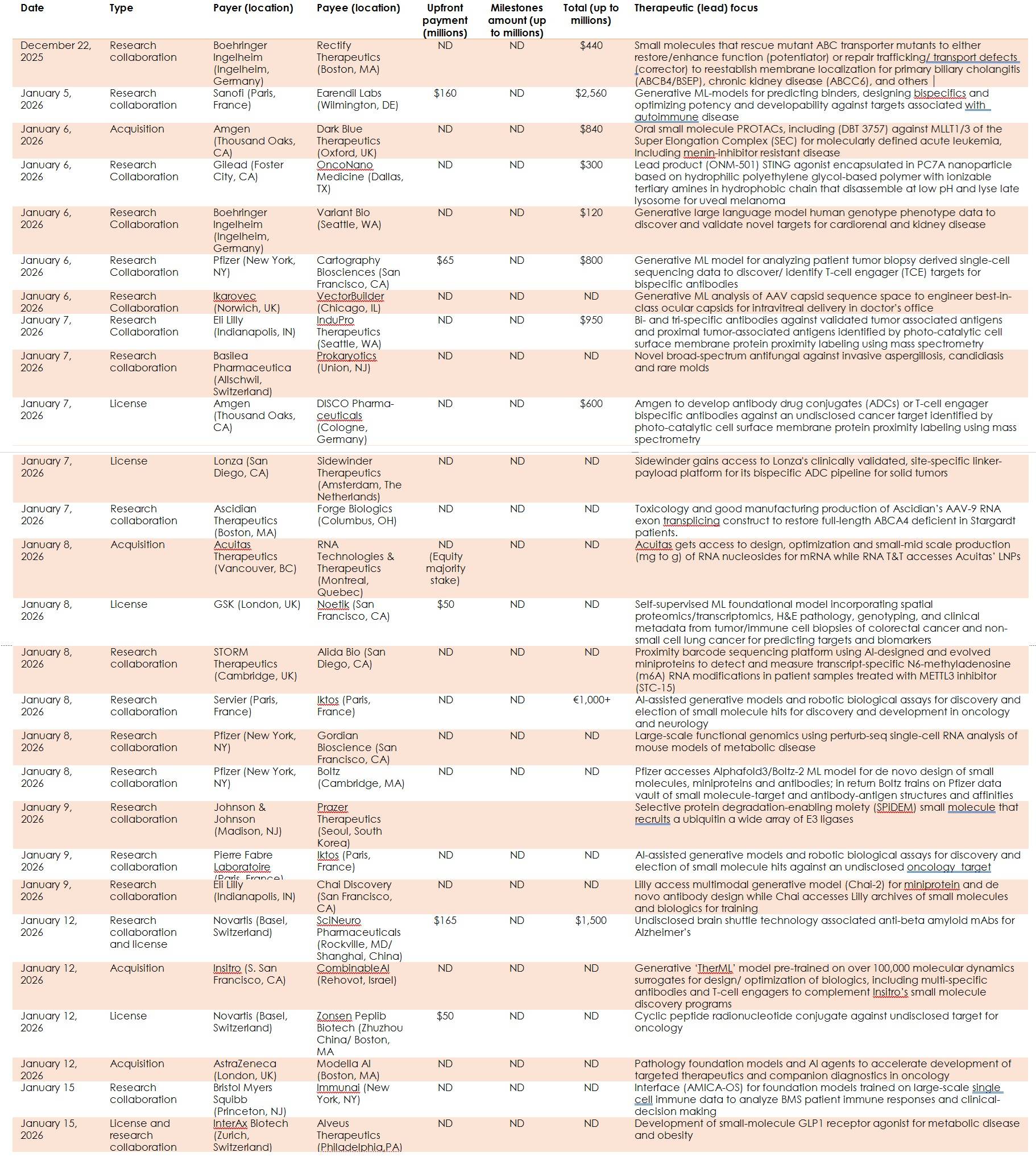 Happy belated New Year from The Needle, a newsletter from Haystack Science to help you navigate the latest translational research, with a roundup of the latest news on preclinical biotech startups from around the world. With the scramble to get announcements and deals before the biotech schmoozefest JP Morgan, it’s been a busy start to January. In terms of translational research, scientists from Ikena Oncology (now Imagene Bio) Espervita Therapeutics, Scripps spinout Abide Therapeutics (now Lundbeck), Kayothera and Japan’s C4U Corporation published papers describing discovery science. Given the more upbeat fundraising environment, seed, series A and series B financings have been ticking over rapidly since the beginning of January, with strategic funds Boehringer Ingelheim Ventures and Pfizer Ventures participating in multiple financings. Novo Nordisk Foundation also set aside a massive $856 million in funding for early-stage European startups. In the week before JPM, a whopping 19 preclinical deals were announced. Prominent multinationals with 2 or more deals each included Boehringer Ingelheim, Pfizer, Eli Lilly, and Novartis. As usual, anything we missed in the biotech startup world, let us know (info@haystacksci.com). Haystack chat As is customary at the turn of the year, we have taken the opportunity to take a look back at financing deals we covered since issue#1, which went live in April last year. Together, these data offer a snapshot of how capital flowed into early-stage, preclinical therapeutic startups in 2025 — and where it did not. Before diving into the numbers, it is worth qualifying that this analysis captures only publicly disclosed financing rounds, rather than the full universe of early-stage biotech funding. An increasing fraction of preclinical companies now operate in stealth, in part because of fast-moving competition from regions such as China. As a result, the figures presented here likely undercount the true level of early-stage activity. From the start of our coverage in Q2 2025 through the end of December, we reported 195 preclinical financing rounds. Because Haystack Science focuses on discovery-stage and pre-IND companies, this number excludes financings for assets already in clinical development. Even so, the dataset provides a useful lens on early-stage investor behavior. Independent industry analyses paint a consistent picture. Multiple sources indicate that 2025 was a year in which venture capital shifted toward later-stage, clinical-stage deals, which were fewer in number but larger in size. This trend was reinforced by ‘Q4 2025 Biopharma Licensing and Venture Report’, presented at the JP Morgan conference. According to JP Morgan, 2025 saw just 191 seed and Series A financings, the lowest total since 2020.